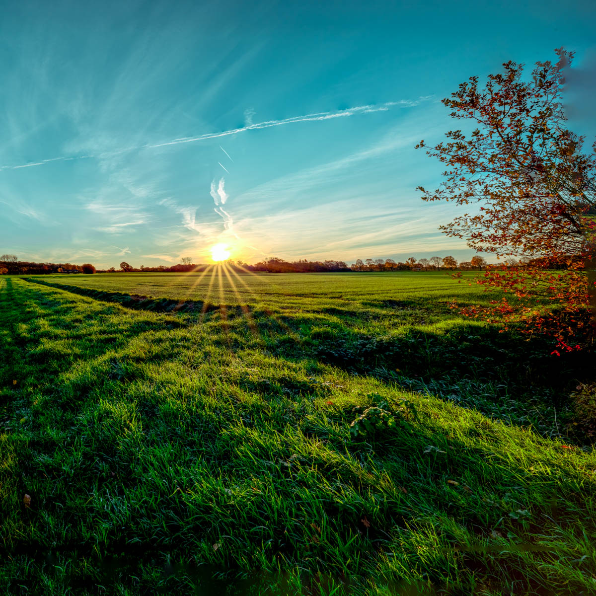 Sonnenaufgang auf grüner Wiese 20x20x2 cm (BxHxT)